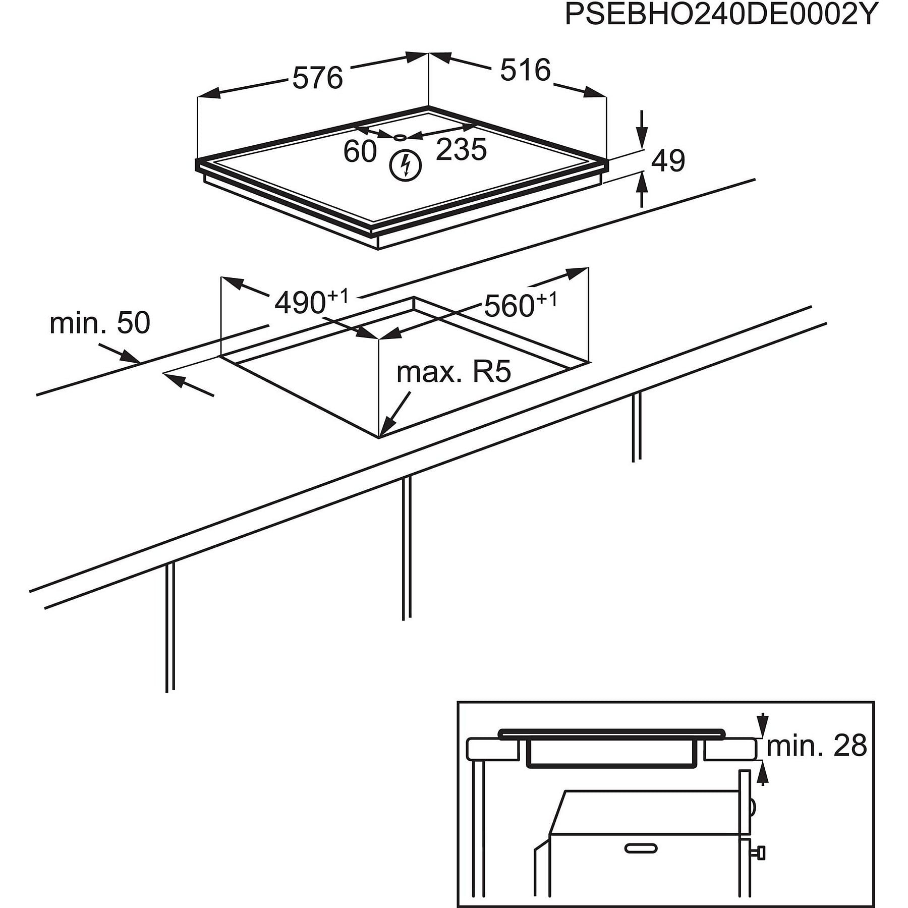 Abmessungen der 1. Kochzone |