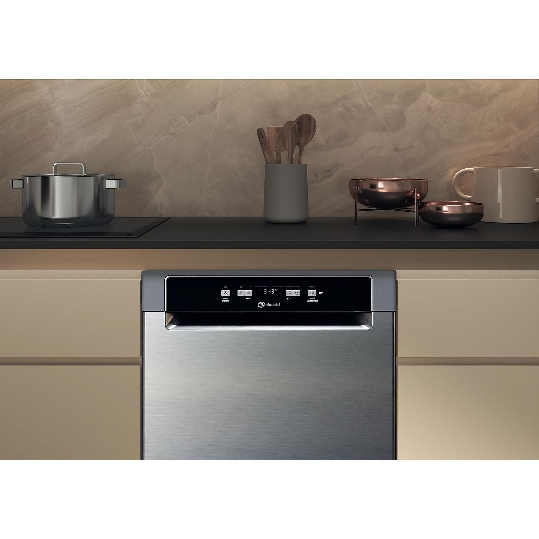 Akustisches Signal zeigt das Programmende an. Elektronische Salz- und elektronische Klarspülernachfüllanzeige. Edelstahl-Innenraum für maximale Hygiene. Warmwasseranschluss bis 60 °C möglich. Gerätehöhe verstellbar von 820 – 900 mm. |