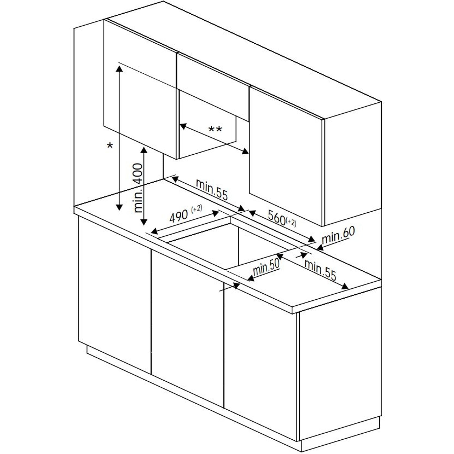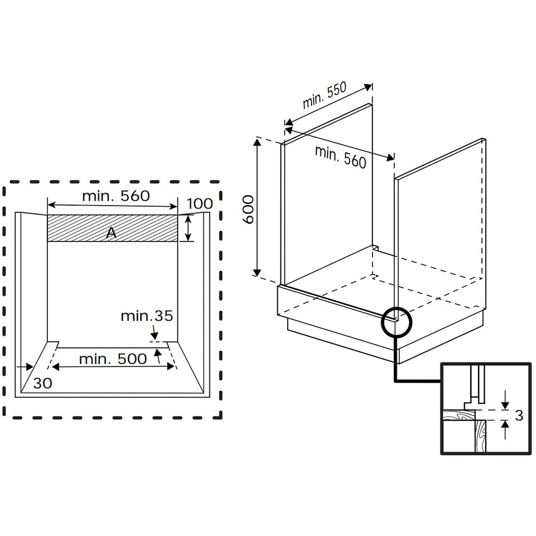 Abmessungen der 3. Kochzone |