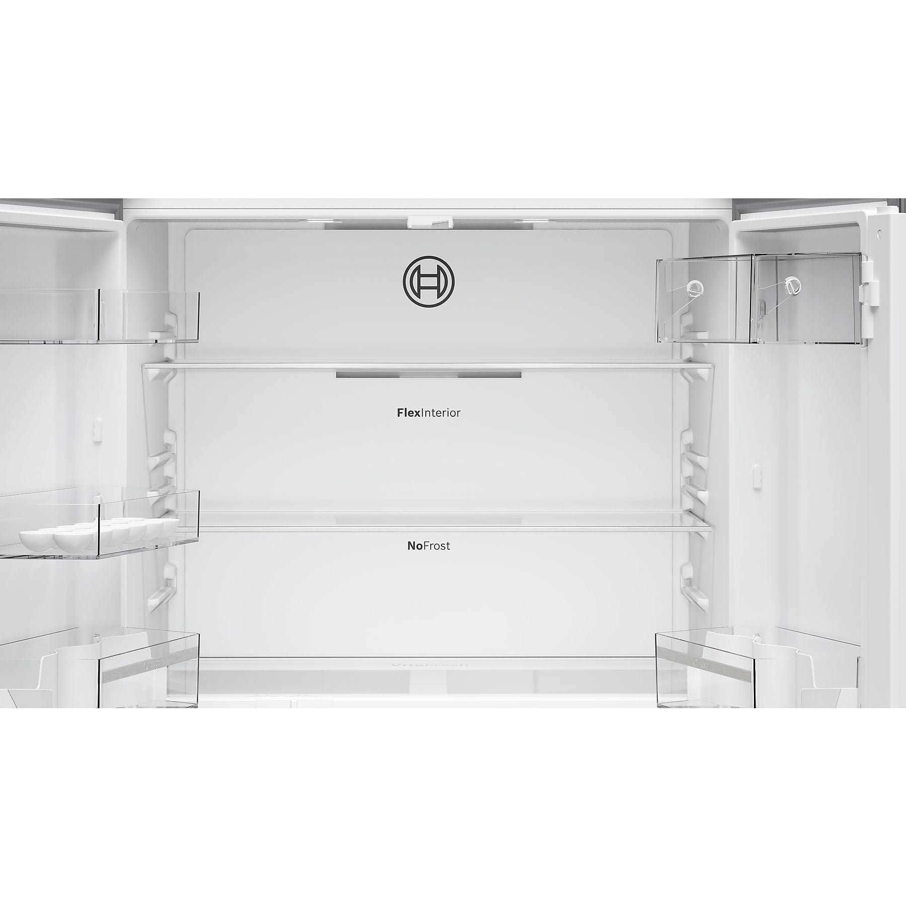 Multi Airflow-System für optimale und gleichmäßige Kälteverteilung. 2 Flaschenabsteller, 2 Türabsteller, Butter-/Käsefach mit Klappe. Frischhaltesystem – 1 VitaFresh ◄0°C► Schublade – Fisch und Fleisch bleiben länger frisch. |