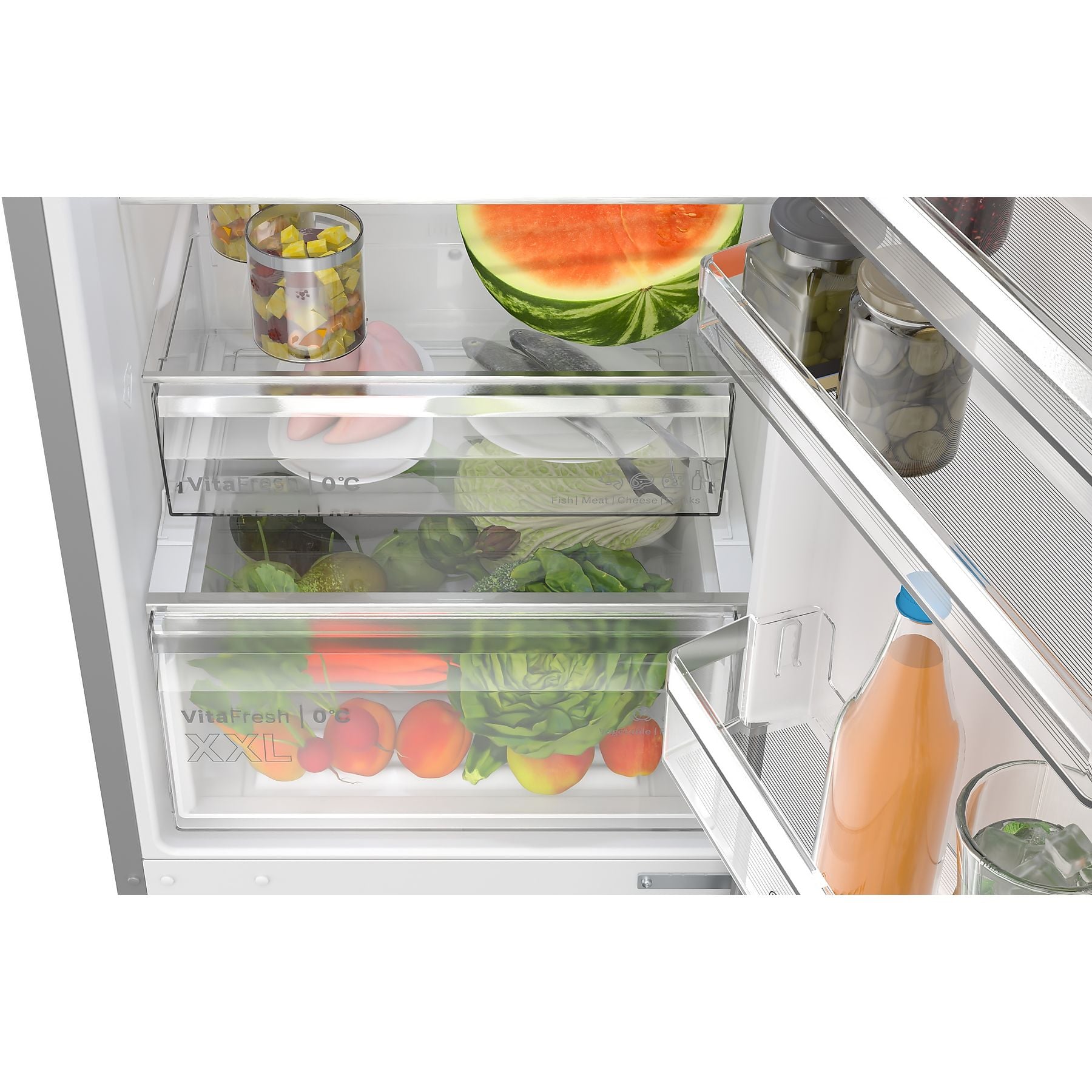 Die VitaFresh XXL 0°C-Funktion der BOSCH KGN392LAG Serie 4 sorgt dafür, dass deine Lebensmittel deutlich länger frisch bleiben. In der extragroßen Schublade werden Temperatur und Luftfeuchtigkeit präzise geregelt. Dadurch bleiben Obst, Gemüse, Fisch und Fleisch länger knackig und aromatisch. Du kannst also deine Einkäufe gezielt einlagern und die Qualität der Produkte besser erhalten.