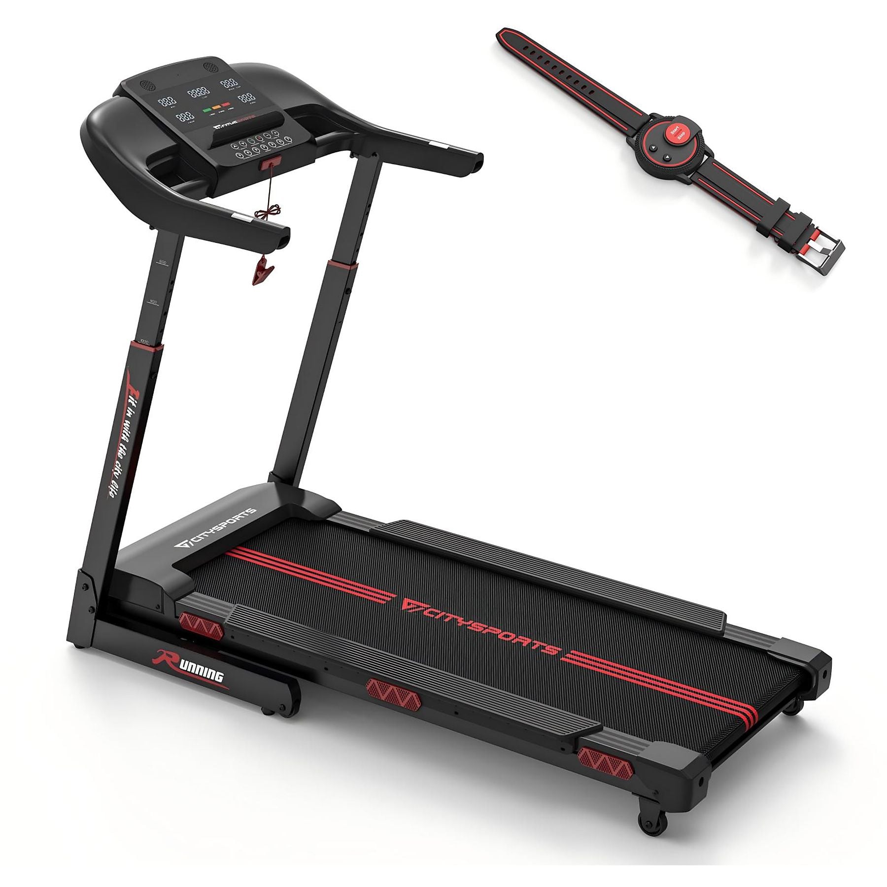 CITYSPORTS Verstellbare Steigung 1-15 km/h Klappbar APP Laufband, Schwarz