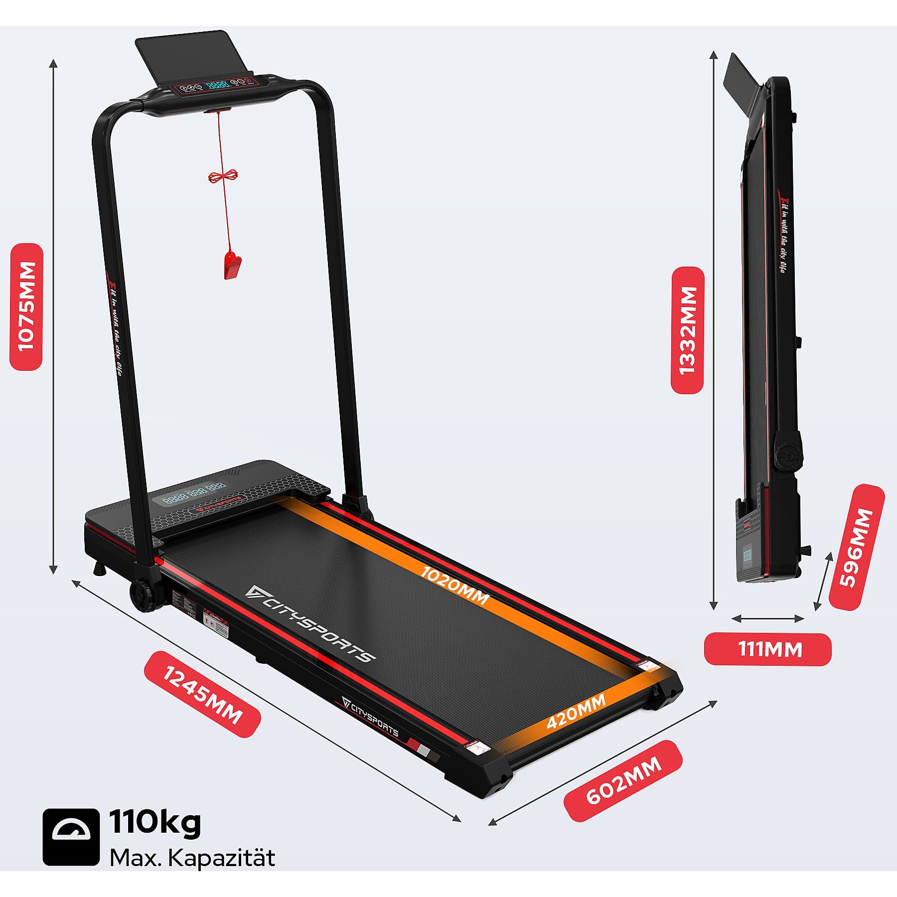 CITYSPORTS WP3S Walking pad Klappbar bis 12 km/h Laufband, Schwarz
