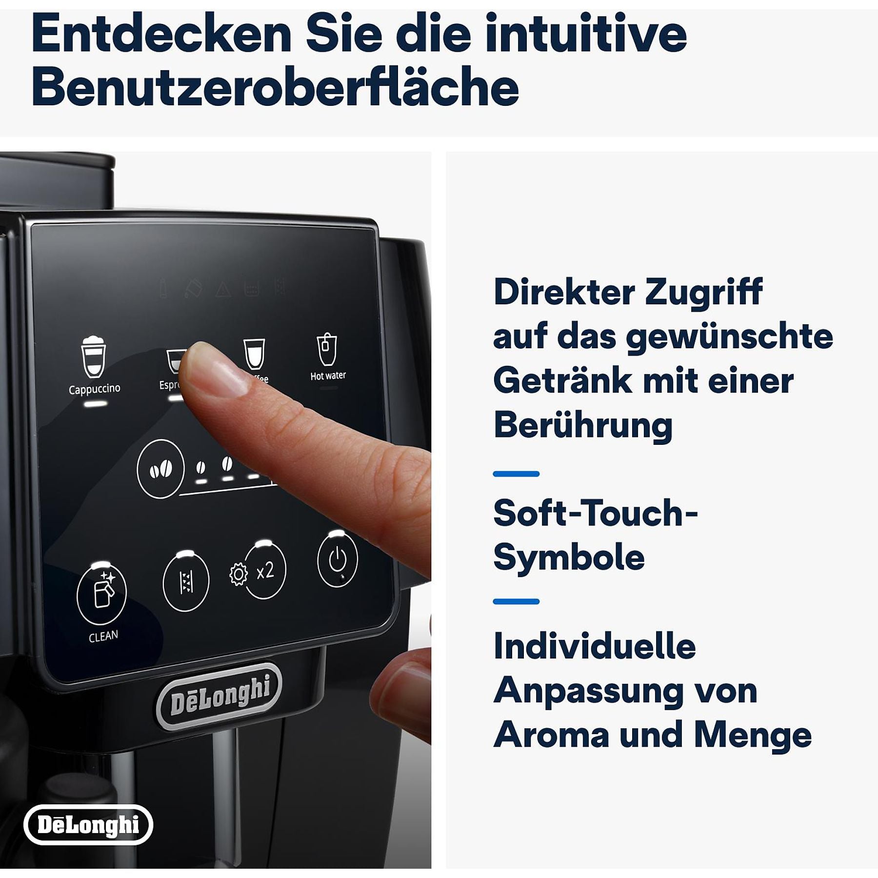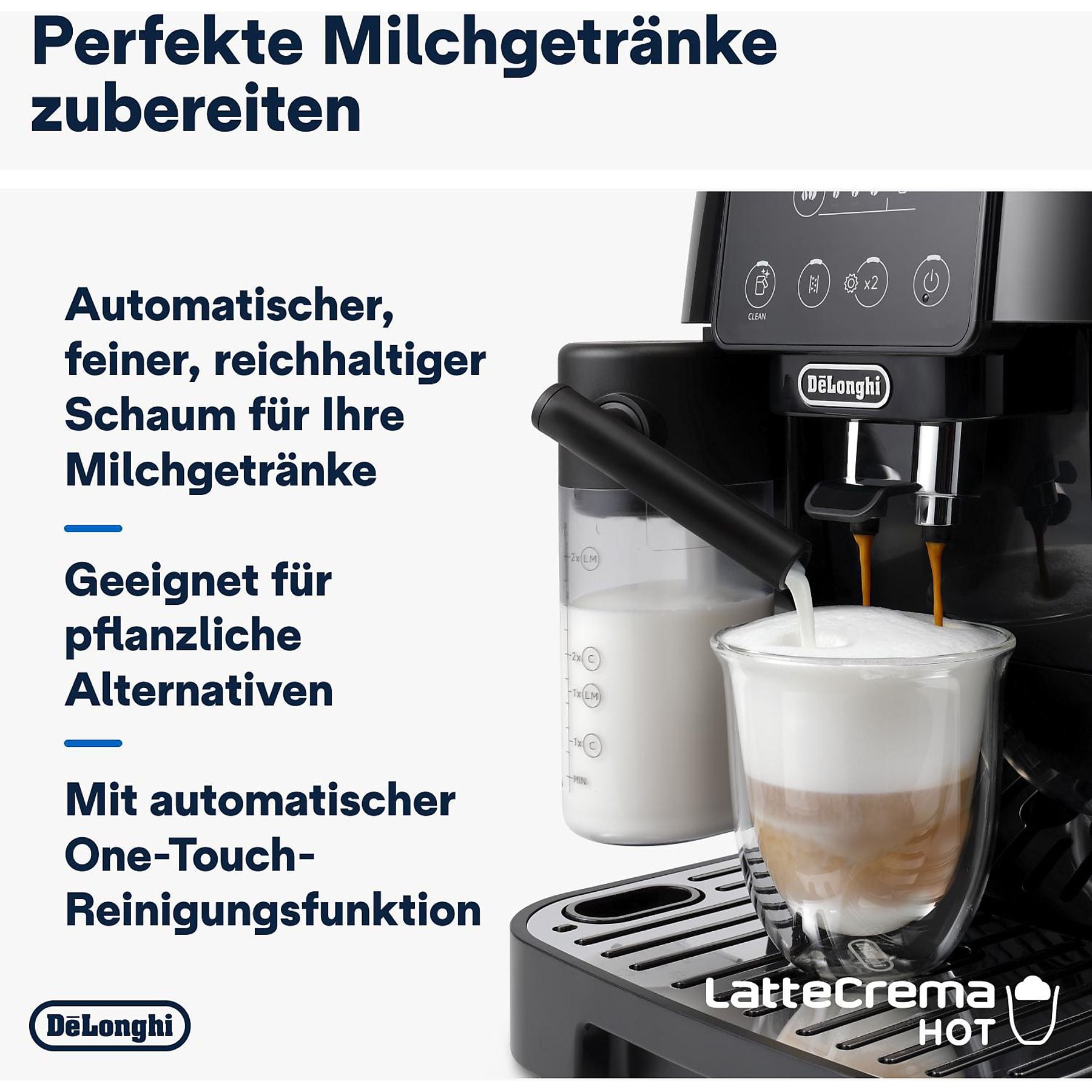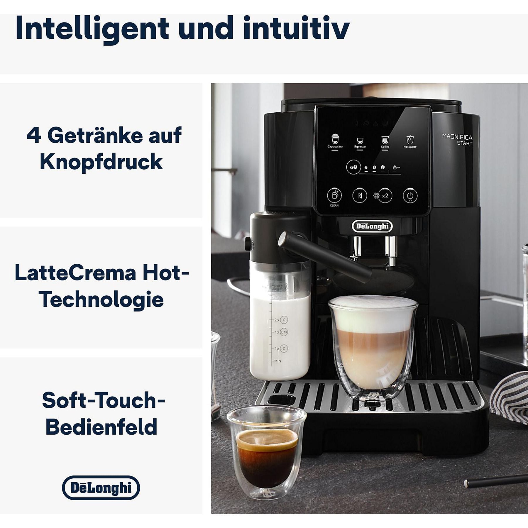 Espresso, Espresso Lungo, Espresso Intenso, Ristretto Italiano, Kaffee, Doppio +, Filter Style, Filter Mild, Americano, Kaffeekanne, Verlängerter, Red Eye, Black Eye, Cappuccino, Latte Macchiato, Caffelatte, Cappuccino Mix, Espresso Macchiato, Flat White, Cappuccino +, Cortado, Café con Leche, Café Au Lait, Galão, Milchkaffee, Koffie Verkeerd, Cold Brew, Cold Brew Pot, Cold Brew to Mix, Cold Brew Latte, Cold Brew Cappuccino, Babyccino, Milch, Tee Funktion , Heißes Wasser |