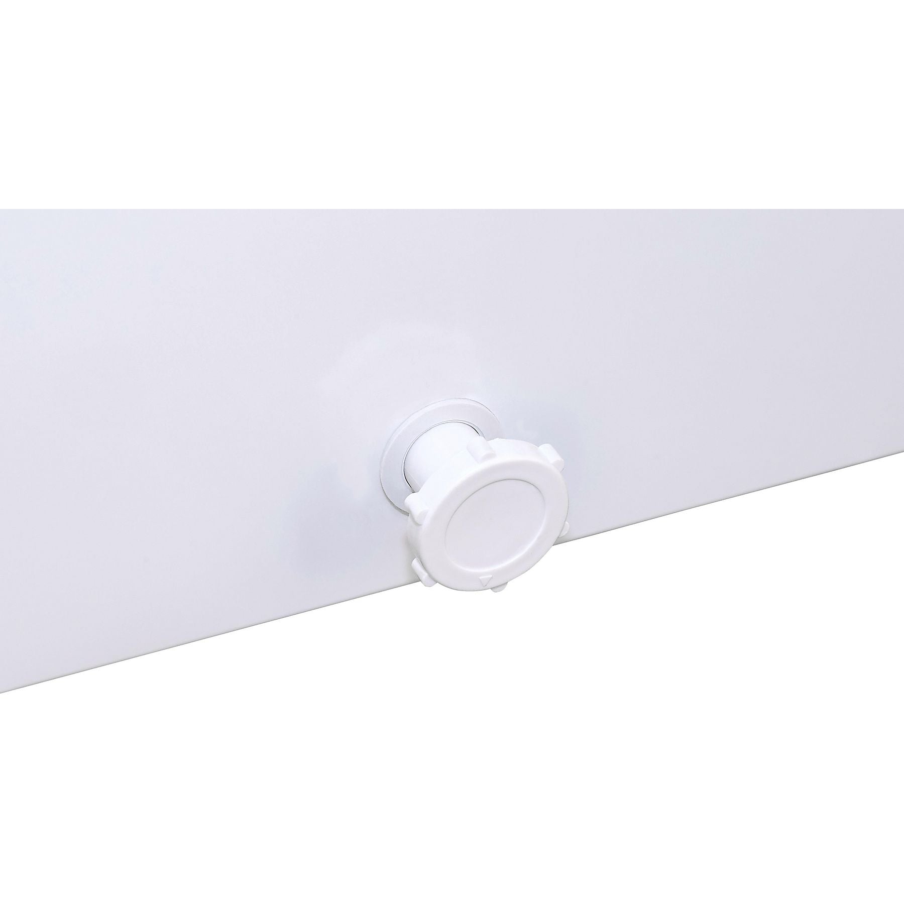 Die Bedienung der Gefriertruhe ist absolut unkompliziert. Du stellst die gewünschte Temperatur im Handumdrehen ein. Die höhenverstellbaren vorderen Füße helfen dir dabei, das Gerät auch auf leicht unebenen Böden stabil auszurichten. Mit ihrem klassischen weißen Design fügt sich die Truhe unauffällig in Keller, Hauswirtschaftsraum oder Garage ein.