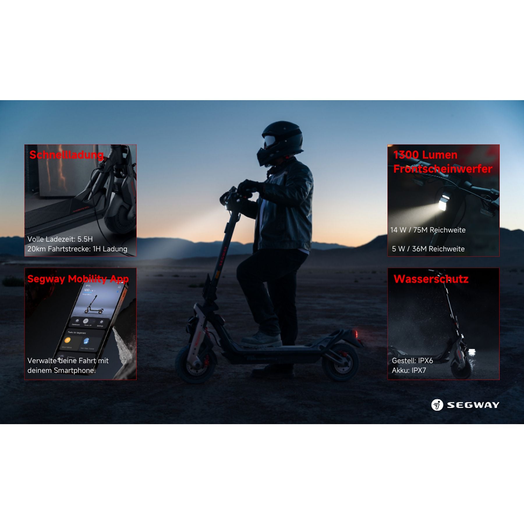 Per Knopf und Segway Mobility App |
