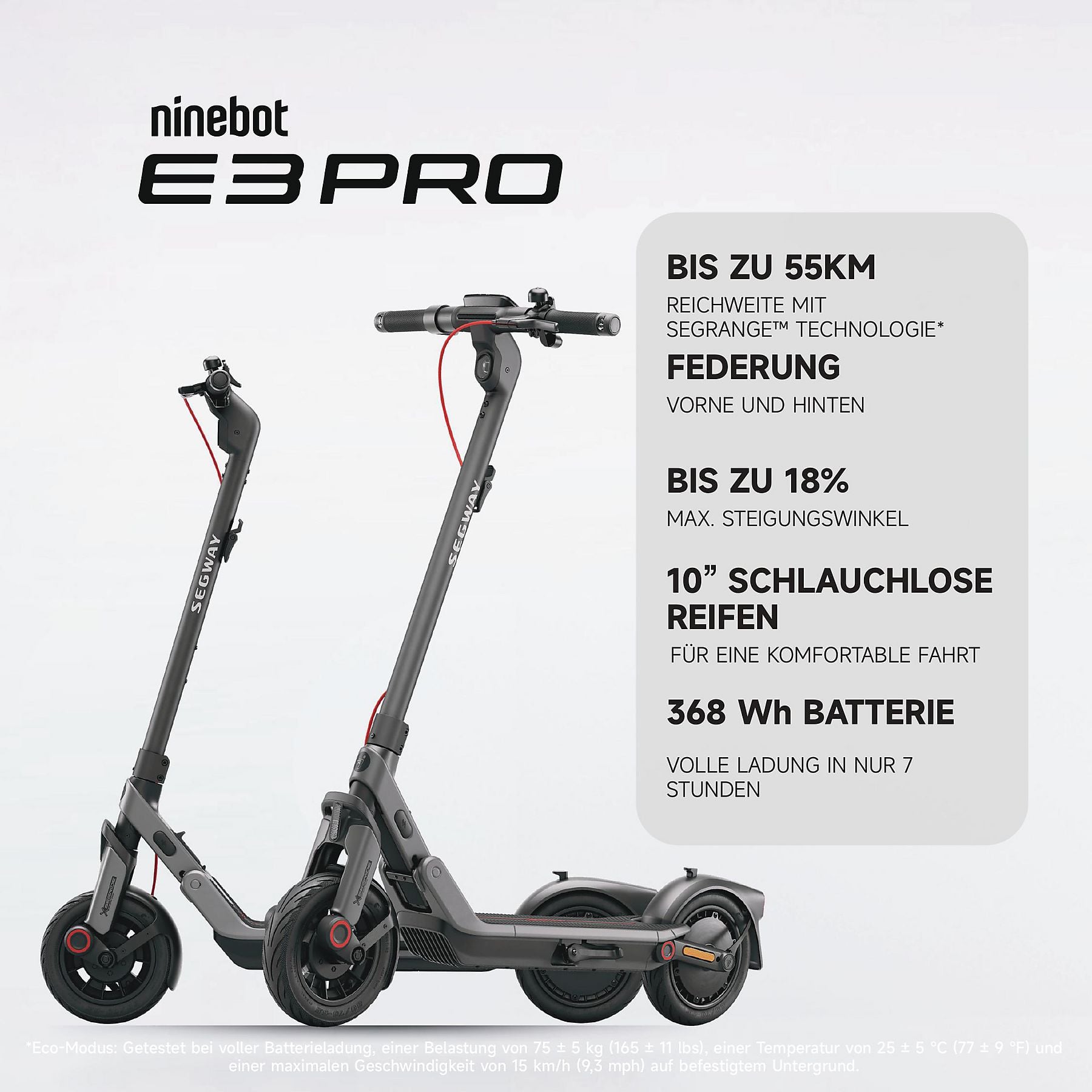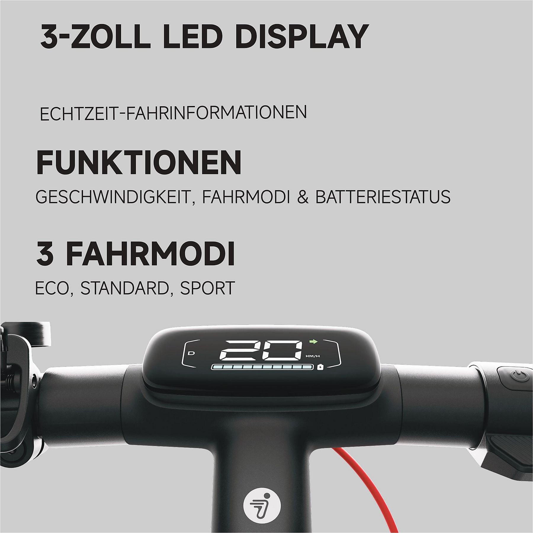 3 Fahrmodi (Eco, Standard und Sport Modus), 1 Gehmodus |