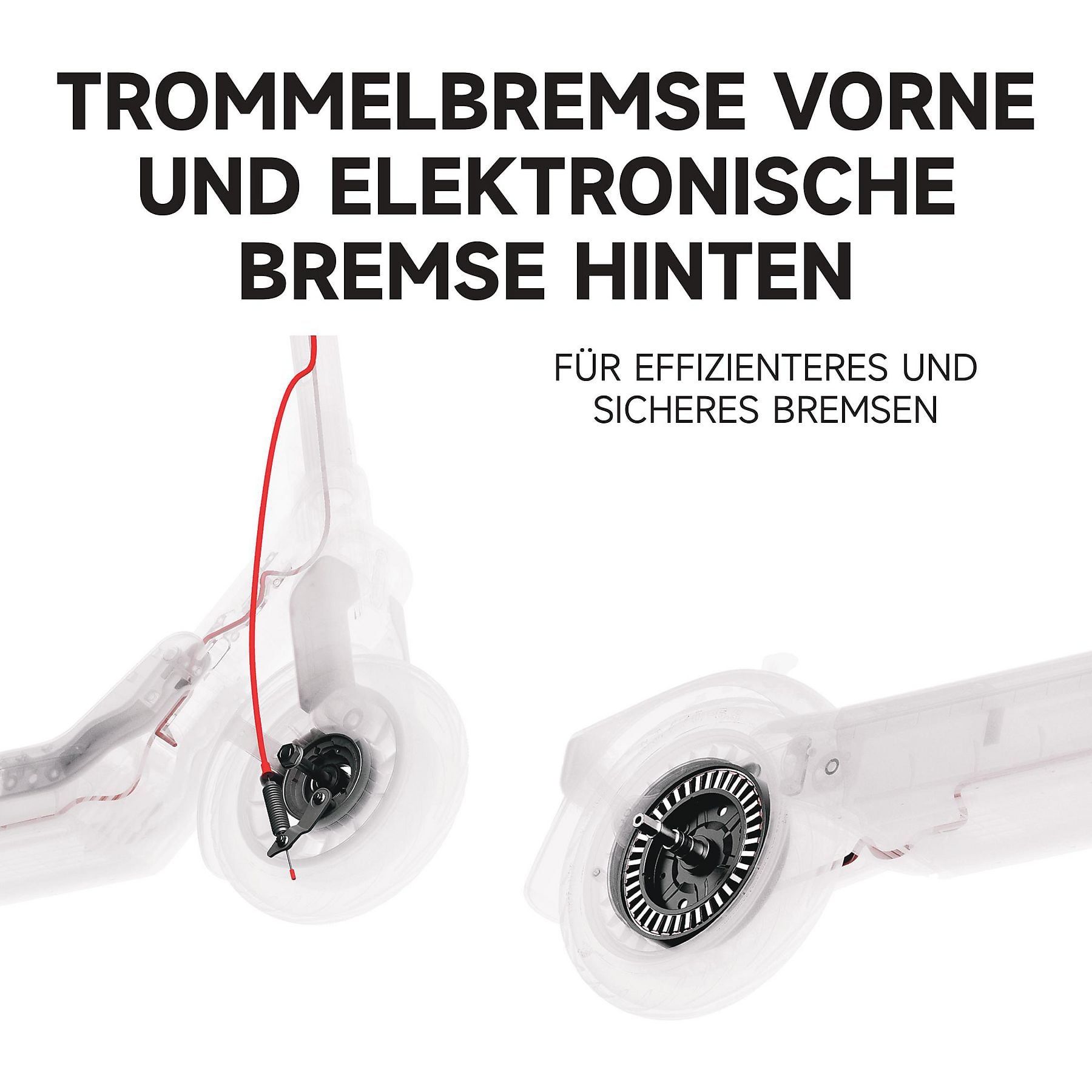 Trommelbremse vorne und elektronische Bremse hinten |