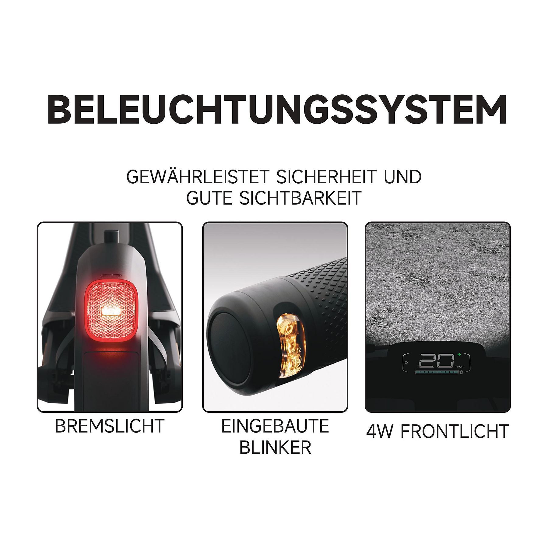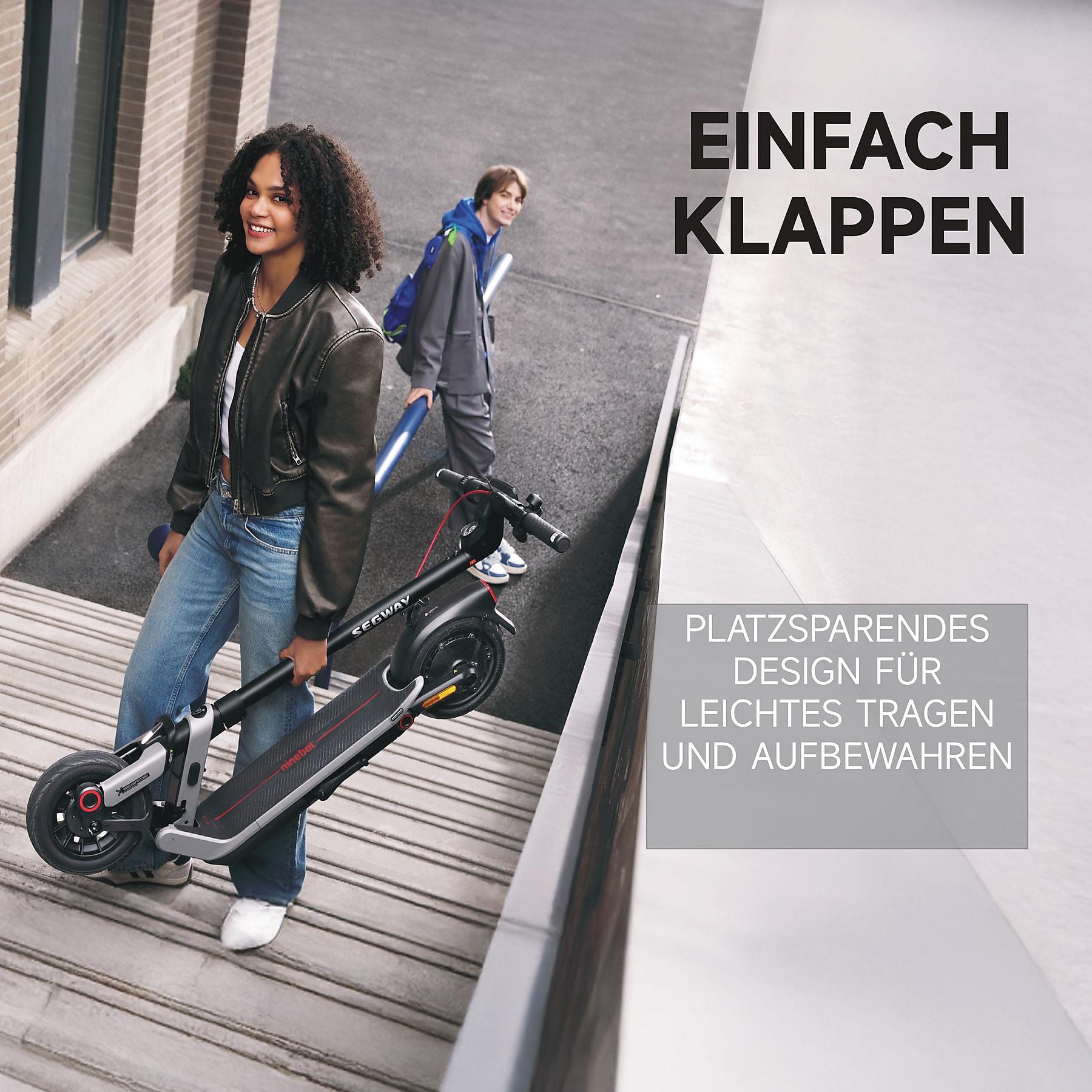 Aktivierung per App Segway Airlock – Entriegelung durch Annäherung Indikatoren Vordere, seitliche E-Mark Reflektoren and hintere Z-Mark Reflektoren |